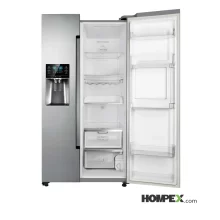ساید بای ساید یکی از انواع مدل یخچال فریزر است که بهصورت دو درب کنار هم طراحی میشود؛ در این سبک، بخش یخچال و فریزر بهطور عمودی در کنار هم قرار دارند و هر بخش درب مجزایی دارد. آرایش یخچال فریزر ساید بای ساید به شما امکان میدهد تا بدون خم شدن یا جستوجو عمیق، به مواد غذایی دسترسی پیدا کنید و فضای ذخیرهسازی نسبتاً یکنواختی برای تازهها و منجمدها داشته باشید. همچنین، این نوع یخچالها فضای بیشتری برای انبار مواد غذایی در قیاس با مدلهای کلاسیک (بالا–پایین یا تکدر) ارائه میدهند و به دلیل طراحی دو درب کنار هم، در بسیاری از آشپزخانهها باز شدن درب با فضای کمتر ممکن میشود.