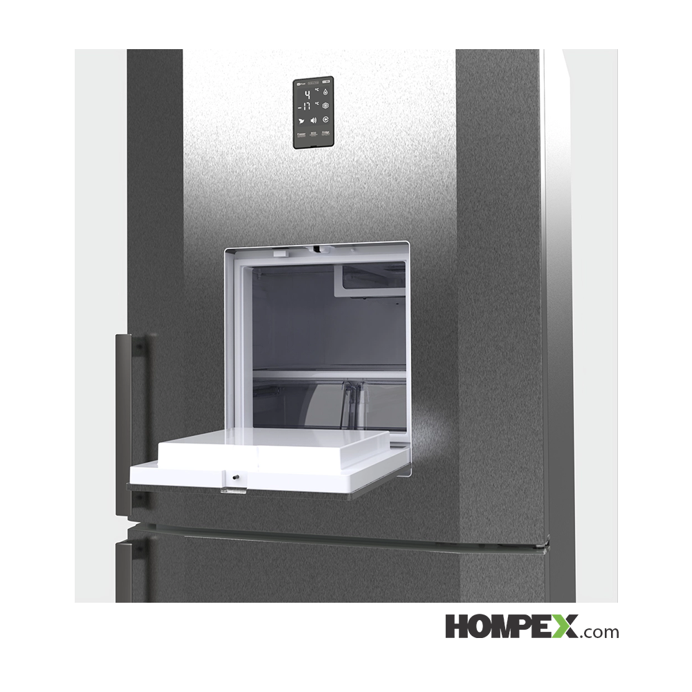 در این مدل از کمپرسور کممصرف با رده انرژی A استفاده شده است که به کاهش مصرف برق کمک میکند. وجود نمایشگر دیجیتال و پنل لمسی امکان تنظیم آسان دمای یخچال و فریزر را فراهم کرده و فیلتر بوگیر داخلی نیز مانع از انتشار بوی نامطبوع میشود. بدنه مقاوم در برابر خوردگی و طراحی ساده و شیک آن با رنگ سفید باعث میشود به راحتی با دکور آشپزخانه هماهنگ شود.