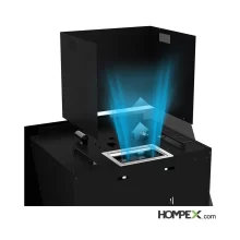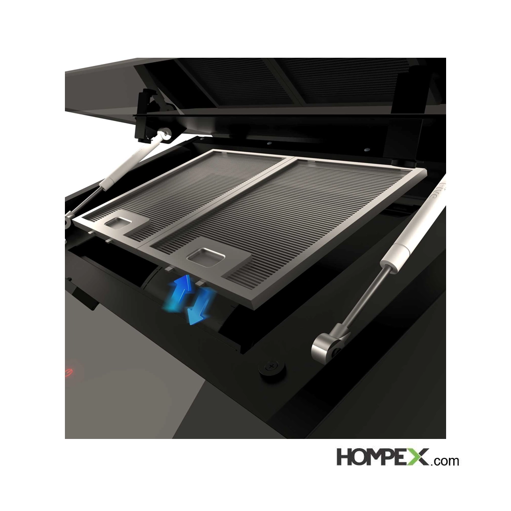 دارای ترموگارد (محافظت از دستگاه در برابر دماهای بالا و جلوگیری از مشکلات ناشی از حرارت شدید), دارای دود کش بلند و قابل تنظیم, قابلیت نصب فیلتر ذغالی, قابلیت نمایش ساعت و تایمر, مجهز به سنسور تشخیص دود و گاز و حرارت