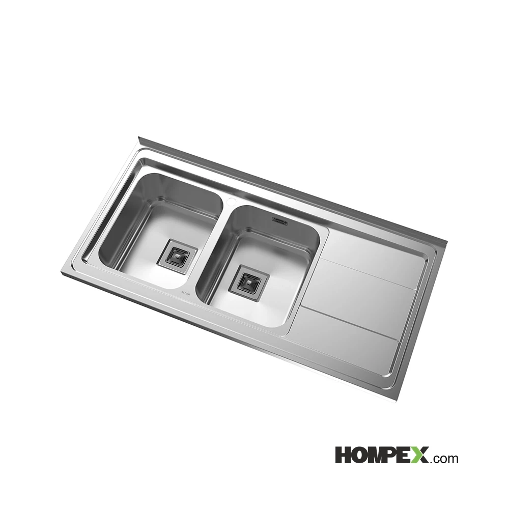 ابعاد مناسب و طراحی دو لگنه آن، امکان شستوشوی همزمان ظروف و مواد غذایی را فراهم میکند. وجود سینی شیاردار باعث میشود آب بهخوبی تخلیه شود و سطح سینک همیشه خشک و تمیز بماند.