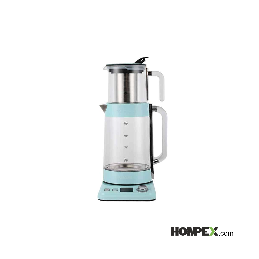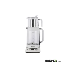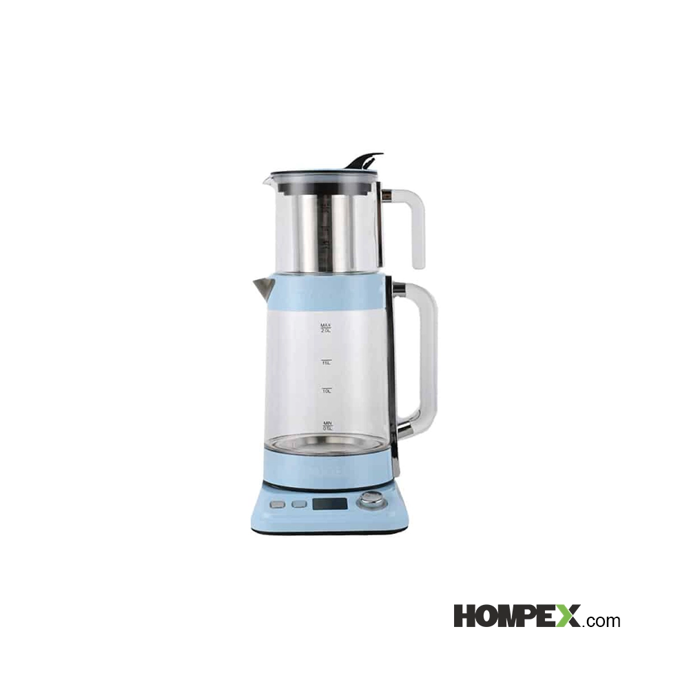 ظرفیت کتری این دستگاه 2 لیتر بوده که به همراه قوری شیشه ای مقاوم در برابر حرارت 800 میلی لیتر گنجایش دارد. این قوری دارای یک فیلتر استیل ضد زنگ به عنوان تفاله گیر بوده که می توانید با قابلیت جداسازی به راحتی آن را شستشو نمایید. از دیگر مزیت این قوری ، طراحی جدید درب آن بوده که می توانید به راحتی و بدون جداکردن درب ، آن را پر نمایید.