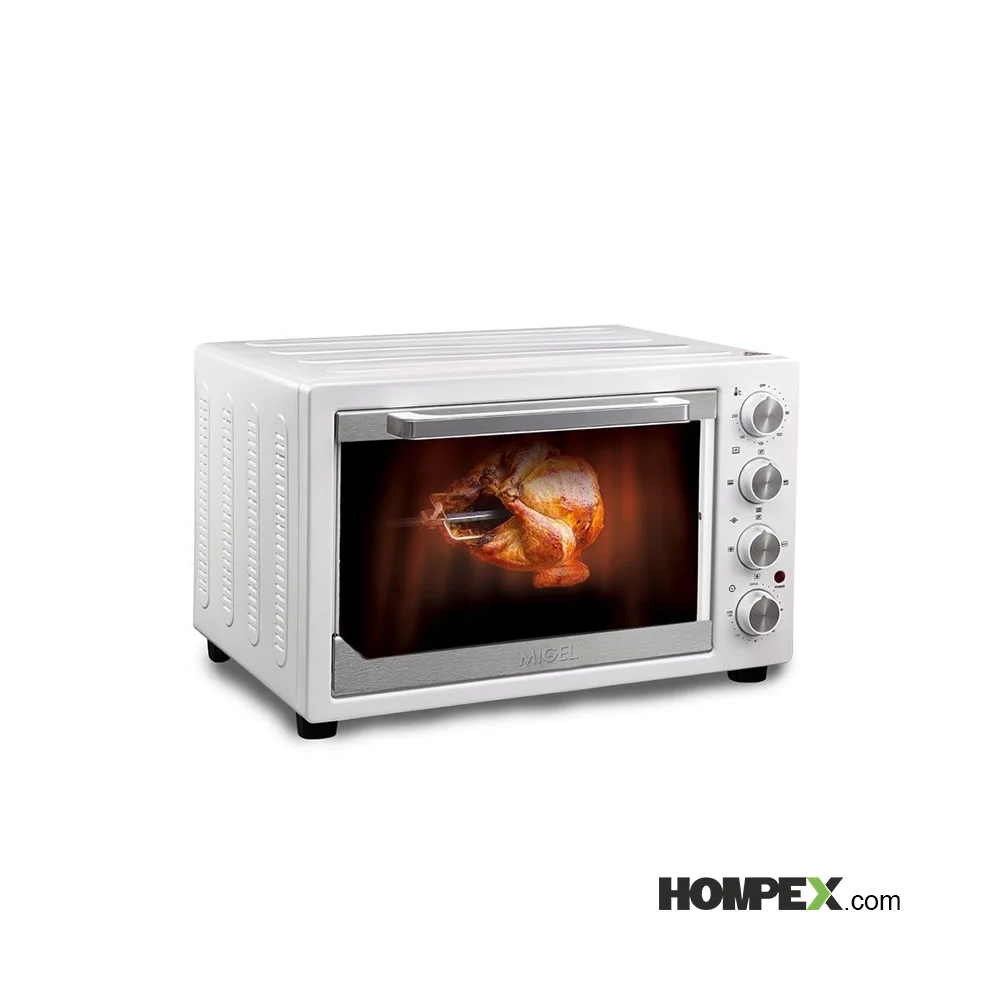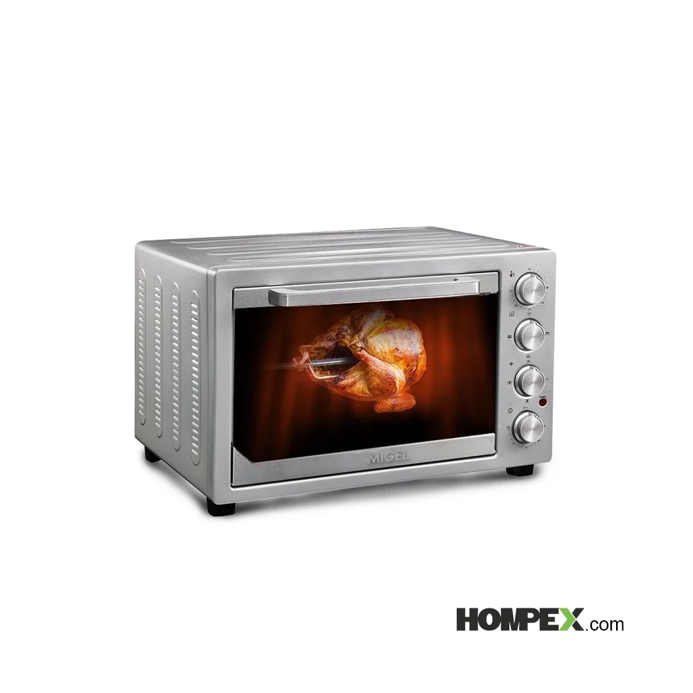 آون توستر میگل با توان 1500 وات و در ظرفیت 35 لیتر تولید شده و جزو محصولات پرفروش به حساب می آید. پیچ های چرخشی در سمت راست دستگاه تعبیه شده که هر کدام دما، المنت ها و تایمر را تنظیم می کند. یکی از قابلیت های برجسته آون توستر قابلیت تنظیم حرارت با دمای 230 درجه است. در این دستگاه به کمک تایمر قابل تنظیم تا حداکثر 120 دقیقه می توان زمان مورد نظر را تعیین کرد.