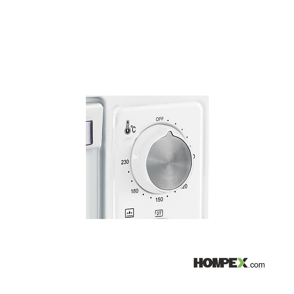آون توستر میگل مدل GEO 350 یکی دیگر از وسایل پر کاربرد هر آشپزخانه محسوب می شود که با طراحی ساده و کاربری آسان به بازار عرضه شده و پخت انواع غذا، کیک، پیتزا و … را ممکن می سازد. ظرفیت این دستگاه 35 لیتر است و با داشتن 1 قفسه می توان به راحتی از آن استفاده نمود. پنل کنترلی در سمت راست تعبیه شده که تنظیمات مرتبط با دما، المنت ها و تایمر را امکانپذیر می کند. توان مصرفی 1500 وات و المنت های بکار رفته در آن، امکان پخت انواع مواد غذایی را میسر می کند. یکی از قابلیت های برجسته آون تستر Migel GEO350 قابلیت تنظیم حرارت با دمای 230 درجه می باشد. همچنین به لطف تایمر قابل تنظیم تا حداکثر 120 دقیقه می توان زمان مورد نظر را تعیین کرد.